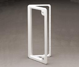 |  Détail | Porte de coffre, avec cadre et contre-cadre plastique, serrure à barillet démontable type ZADI et charnières intégrées dans le contour du profil. La découpe est utilisée pour compléter la partie articulée de la porte.
